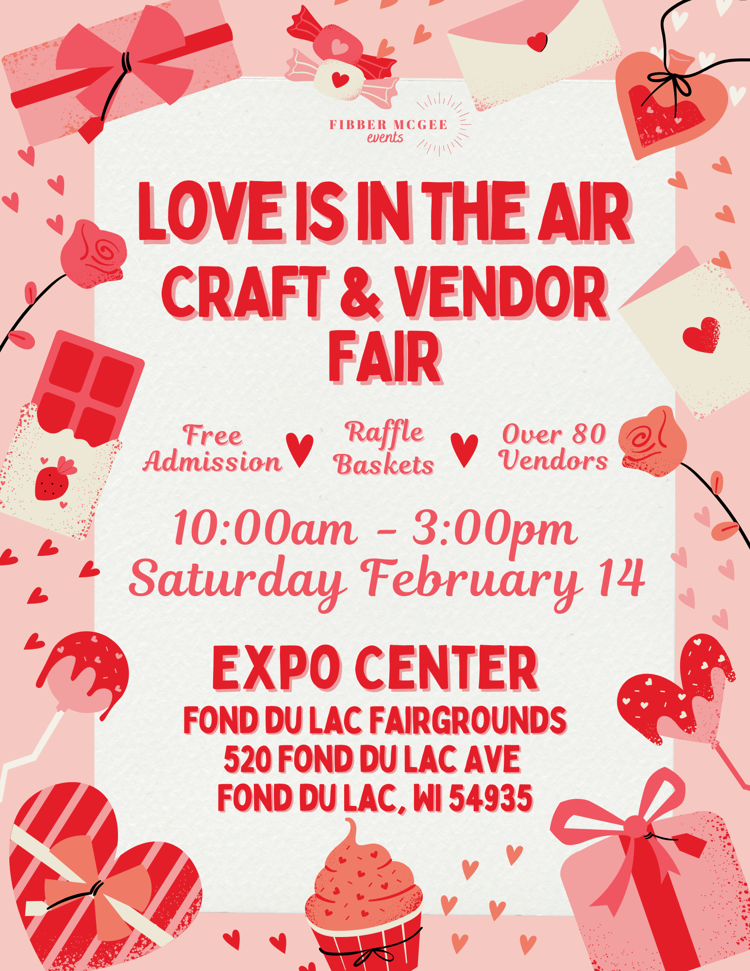 Join us for the Love Is In The Air Craft and Vendor Fair on Saturday, February 14th from 10am - 3pm, at The Expo Center - Fond du Lac County Fairgrounds in Fond du Lac. Are you looking for the perfect gift for special someone? Are you looking to treat yourself? Look no further, the annual Love Is In The Air Craft and Vendor Fair has just the thing you or your loved one needs. Stop by and check out all the amazing products and enter to win some amazing baskets.